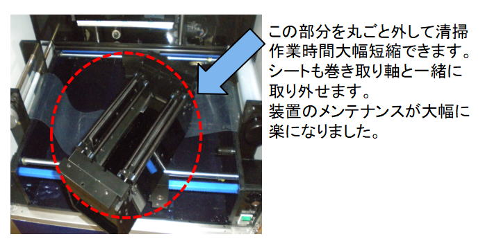 樹脂槽が左右に動き、樹脂の塗布と積層物をシートから剥ぎます。
