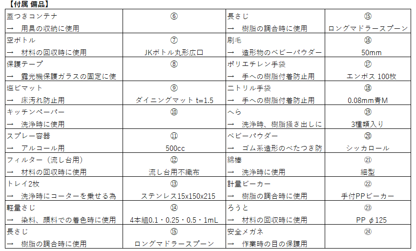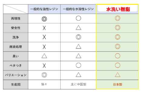 ※アクリル樹脂とゴムライク樹脂の配合で硬さ調整ができます。